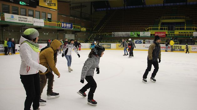 Příchozí si mohli užít dvouhodinové bruslení zdarma, během kterého se podávaly teplé